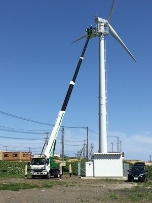 小型風力メンテナンス風景(潤滑ポンプグリス充填)